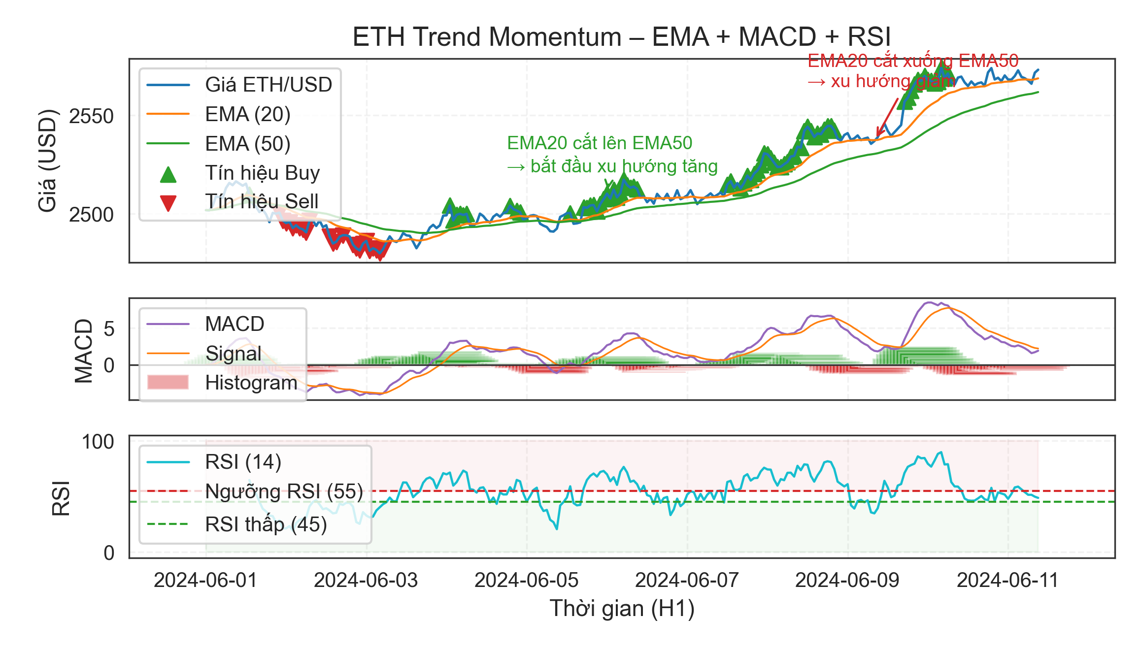 Chiến Lược ETH Trend Momentum – Bắt Sóng Xu Hướng Với EMA, MACD & RSI