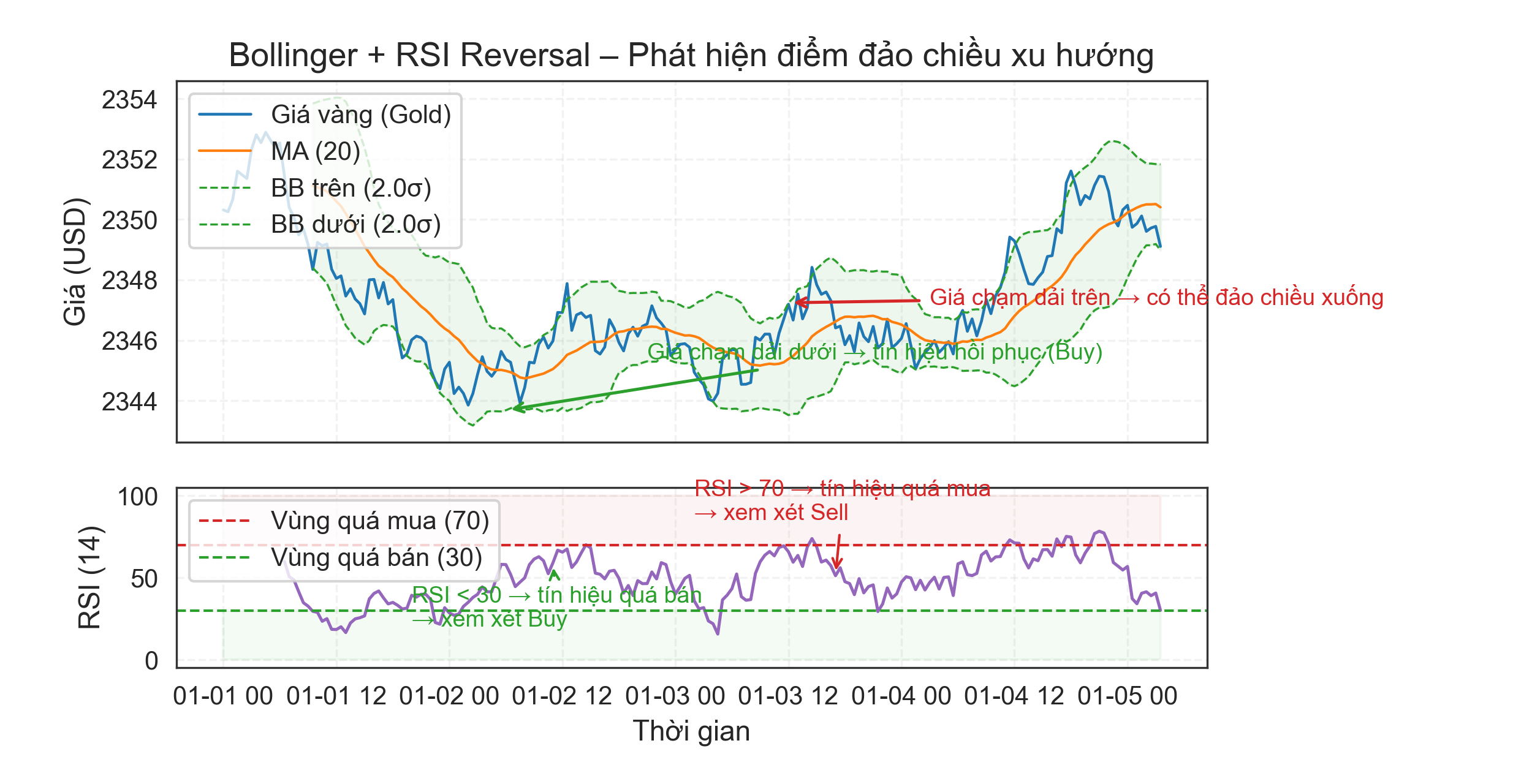 Phương pháp này tận dụng đặc tính co giãn của giá quanh đường trung bình Bollinger Band (BB) để phát hiện vùng quá mua/quá bán, kết hợp RSI filter giúp loại bỏ tín hiệu nhiễu.