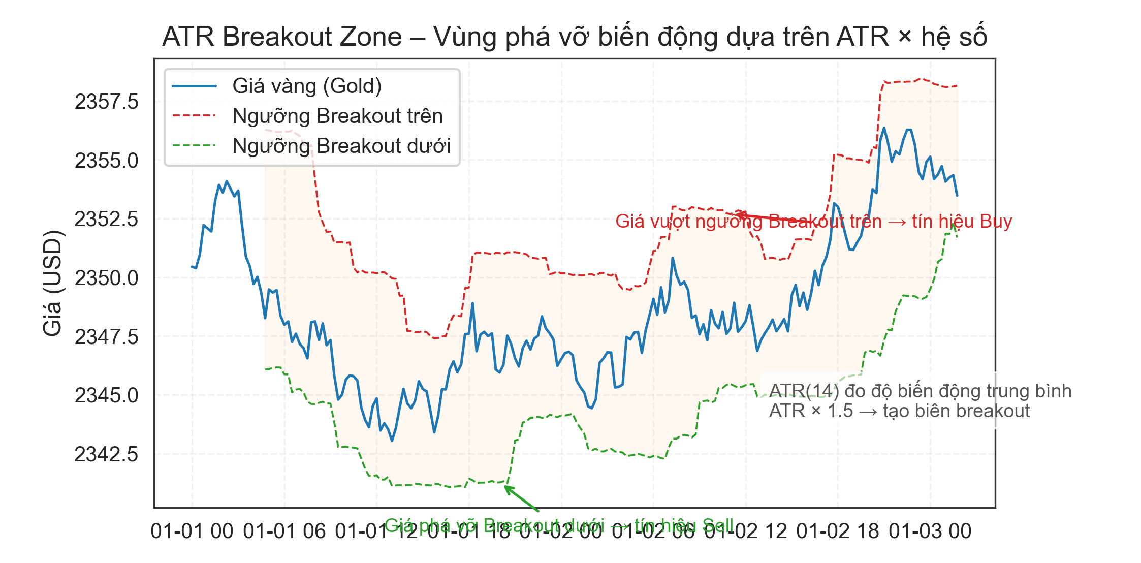 | Giá vượt lên trên đỉnh gần nhất + ATR × hệ số | Tín hiệu Buy breakout |